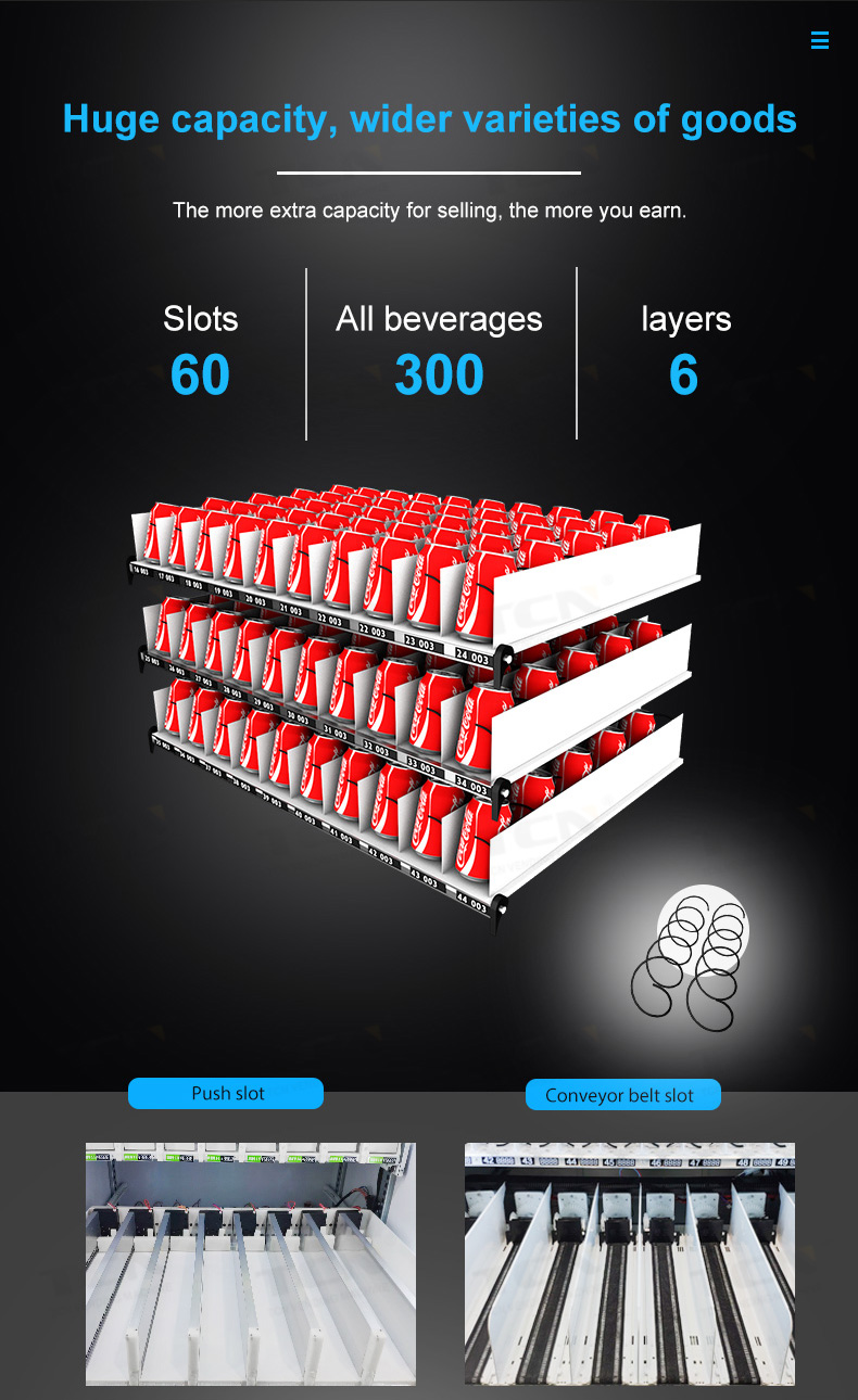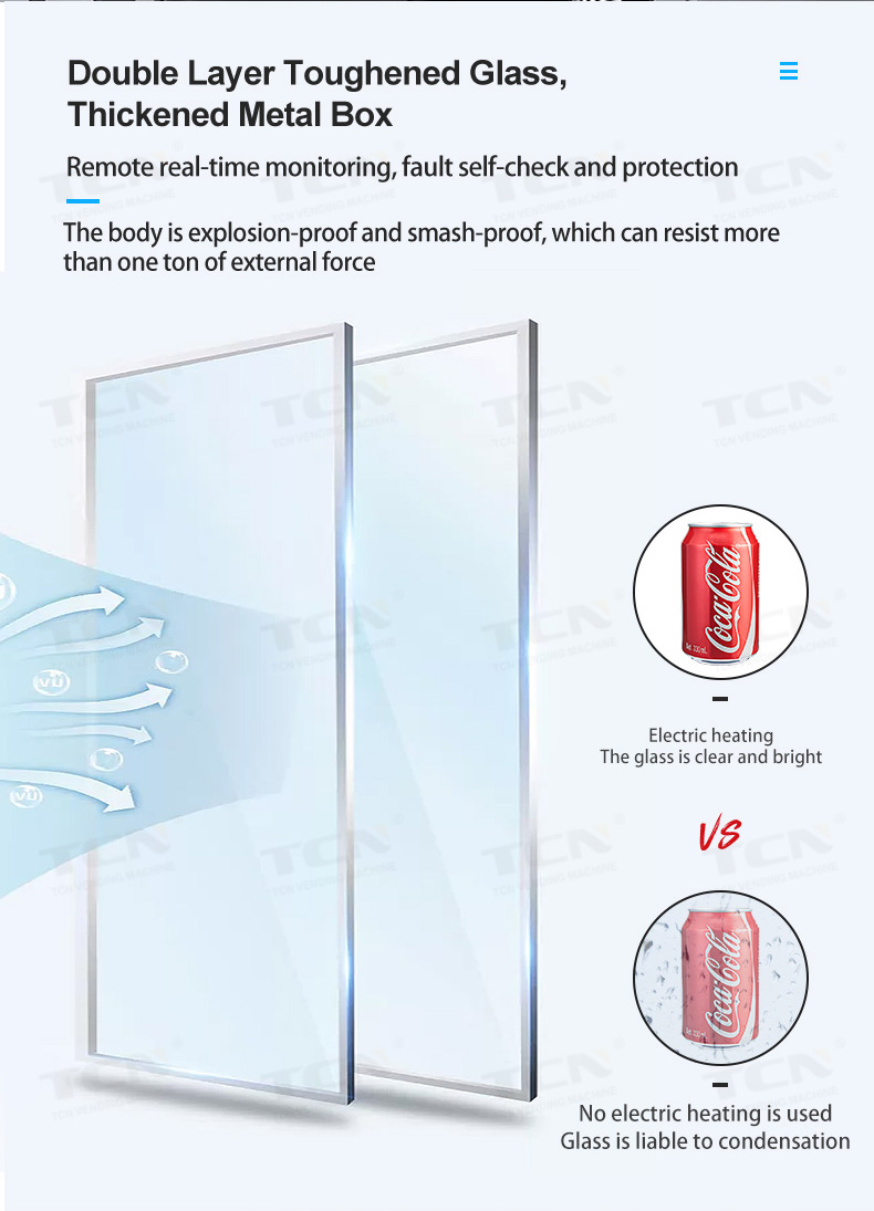1.High strength & powder coated cabinet with fully insulated material, energy efficient vending unit.