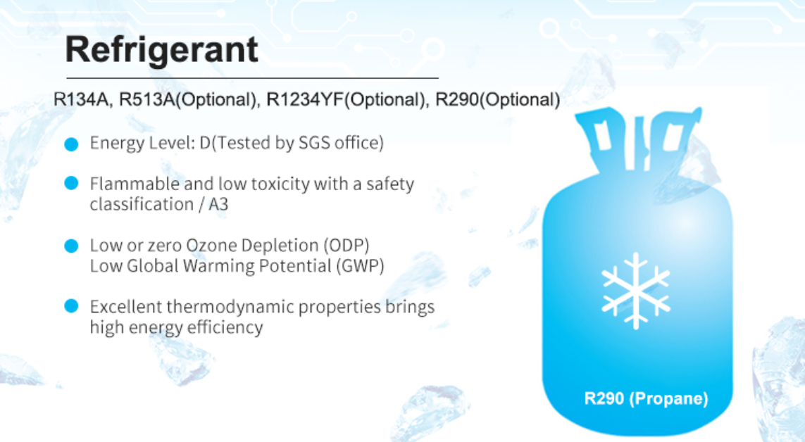 15.Cooling system with R134a refrigerant,can meet the ROHS requirement.