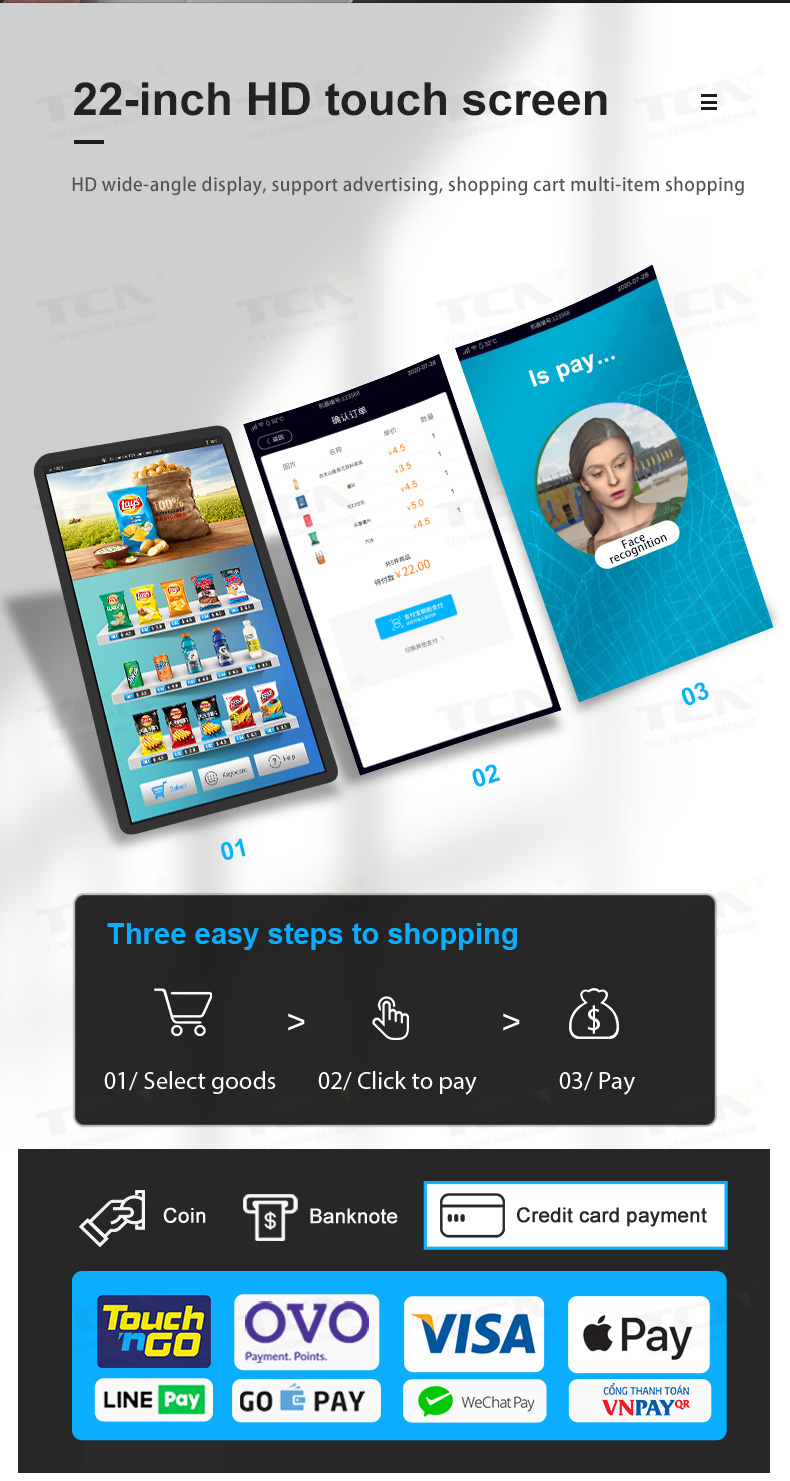 TCN Vending Machine can support many kinds of payment system.