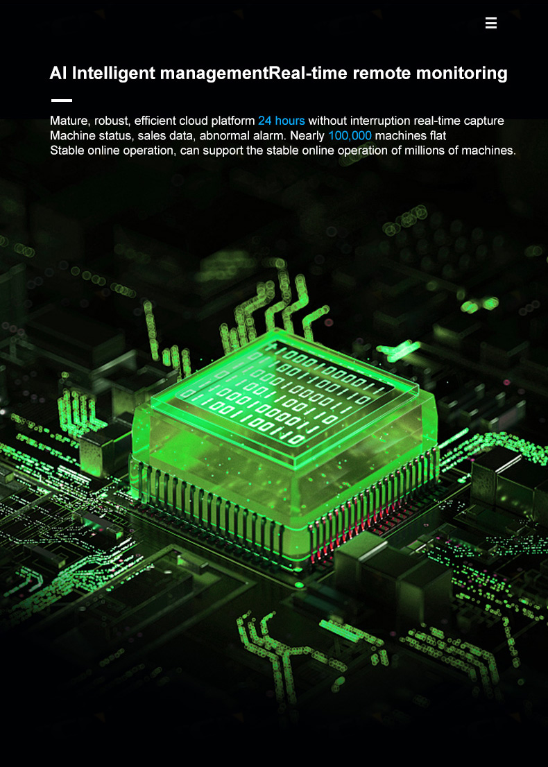 Remote management system can be used for free and provided with managing machine operation status ,feedback failure,monitoring running, remote price changing.